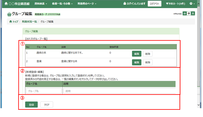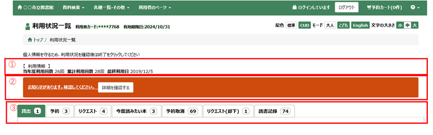 貸出や予約などの利用状況が確認できます。