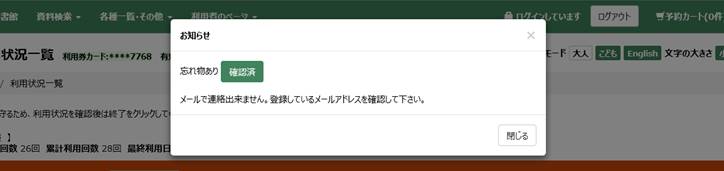 図書館から利用者へお知らせする内容がある場合に表示されます。