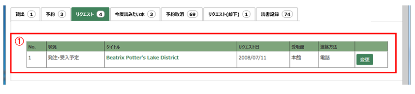 ① リクエスト一覧