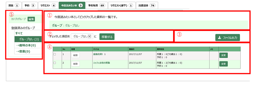 貸出一覧に表示されている資料を全て今度読みたい本に追加します。