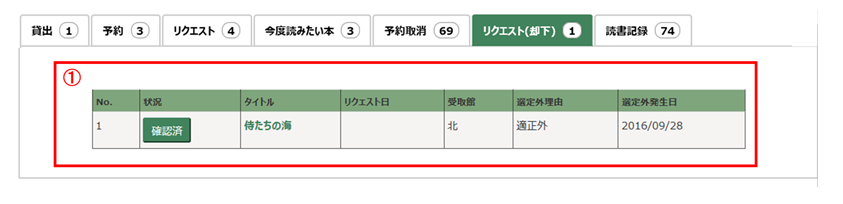 自分が申し込んでいるレファレンスの回答状況を確認できます。