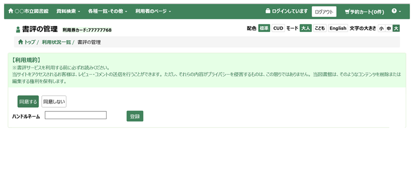書評投稿時に表示するハンドルネームを登録します。