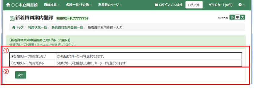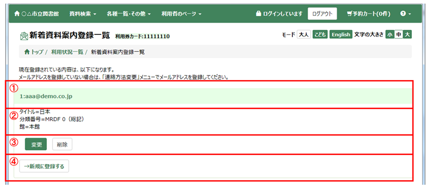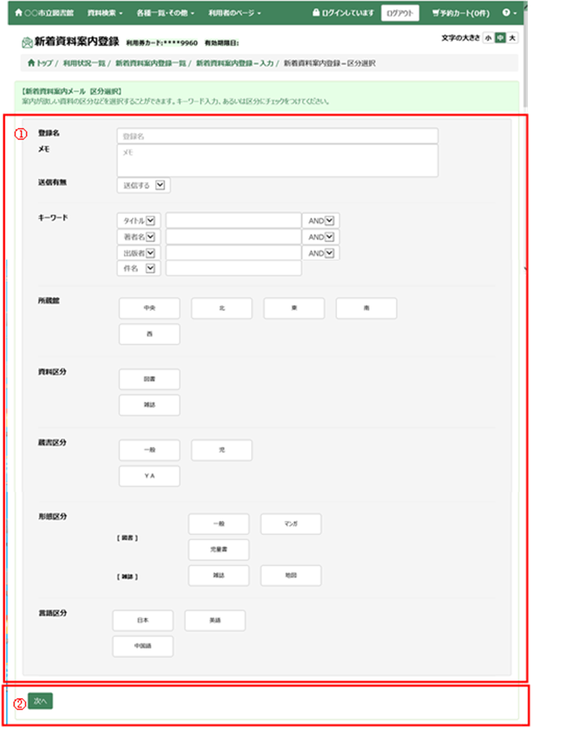 ② 登録済み新着資料案内条件